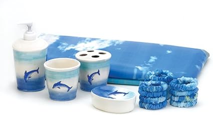 Home » Uncategories » Dolphin Bathroom Set / Viagasafamido Bathroom Accessories Set 4 Piece Resin Dolphin Leaping Bath Accessory Completes With Lotion Dispenser Soap Dish Tooth Cleaning Cup Toothbrush Holder Amazon In Home Kitchen - Polyester bathroom dolphin shower curtain set 3d printed waterproof + hooks 71.